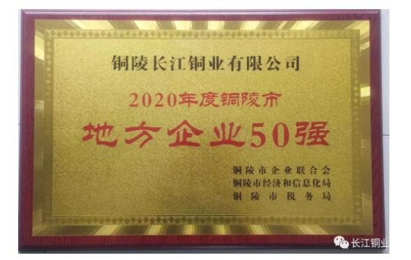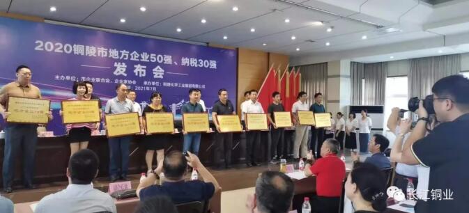 2021年7月6日下午,由市企業(yè)聯(lián)合會、市經(jīng)信局、市稅務局聯(lián)合舉辦的2020年度銅陵市“地方企業(yè)50強”“納稅30強”發(fā)布會在銅化集團會議室隆重召開。副市長王綱根,市老領導、市“四會”創(chuàng)始會長唐世定,市委宣傳部副部長章祎,市中小企業(yè)局局長朱永平,市稅務局黨委委員、副局長李軍等領導出席會議。發(fā)布會上,我司被授予“2020年度銅陵市地方企業(yè)50強”的榮譽稱號!